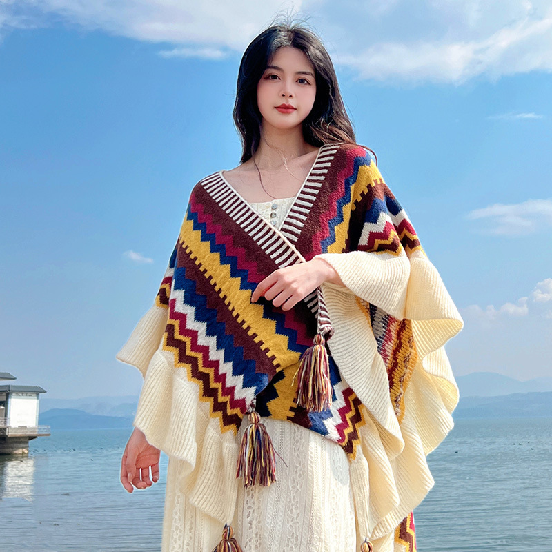 ニット民族風ストール雲南麗江旅行写真マント高級感マント