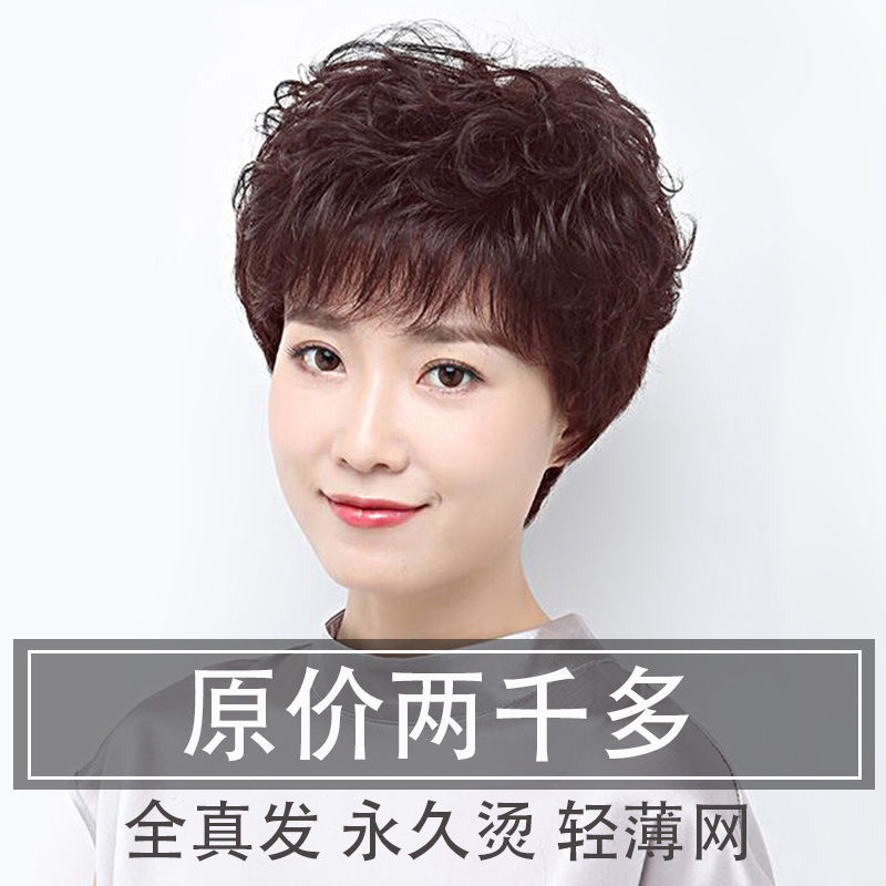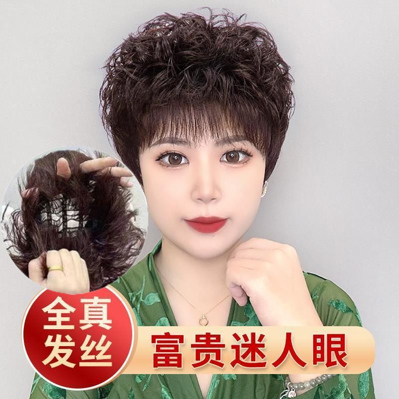 全真髪中高年かつら女短真発送ママ中年レディース短巻き髪人毛前髪ナチュラル