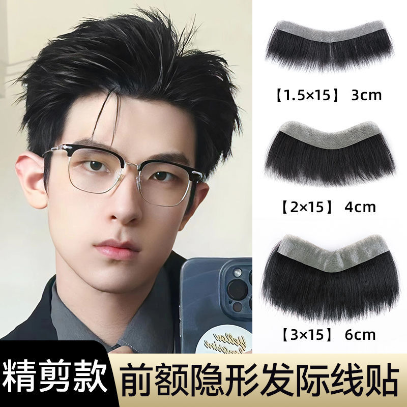 ヘアラインかつらは男性の額に傷のない髪を貼る