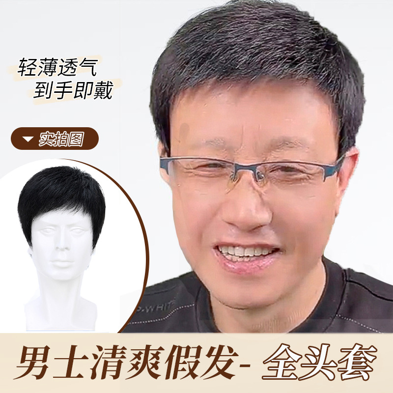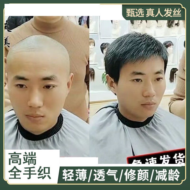 中高年男性かつら真髪短髪全真髪偏分髪セット男性高級かつら中高年の実髪