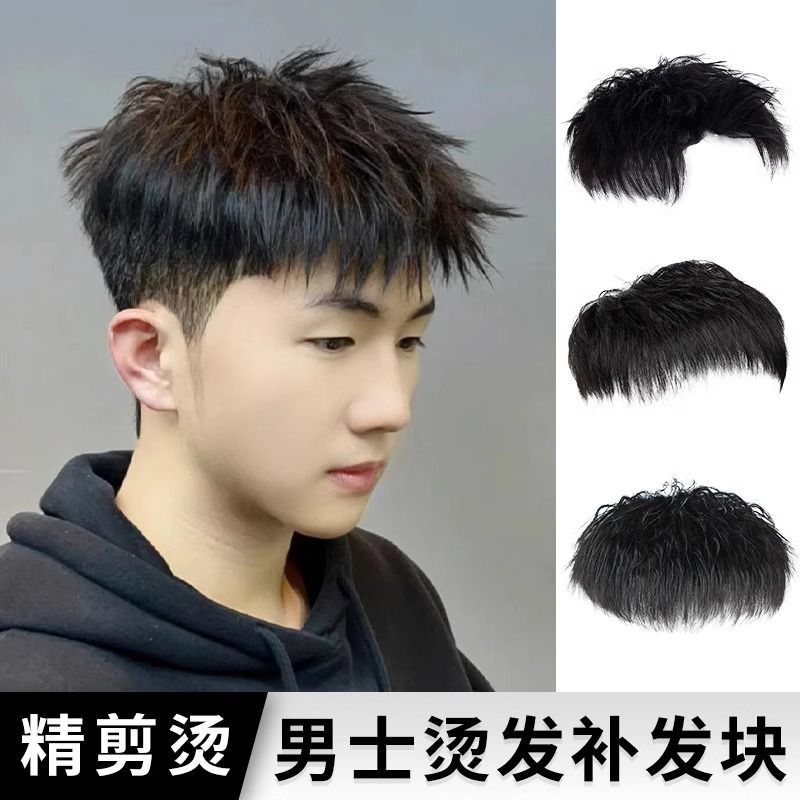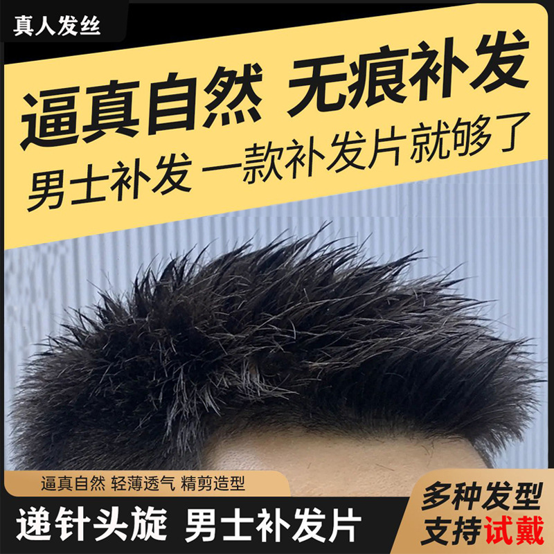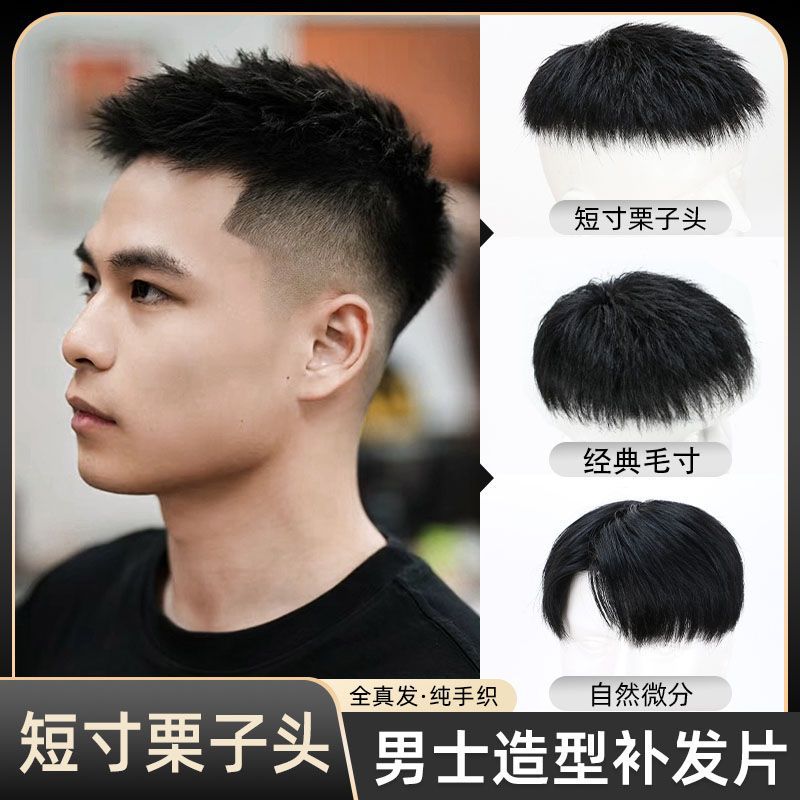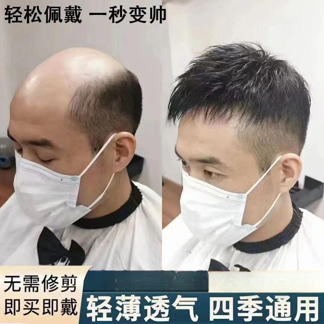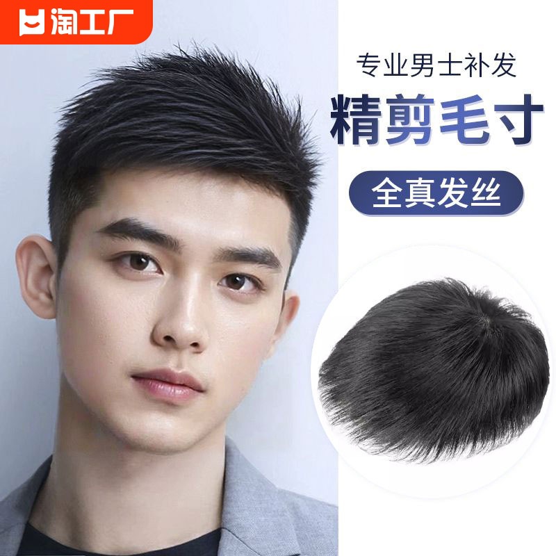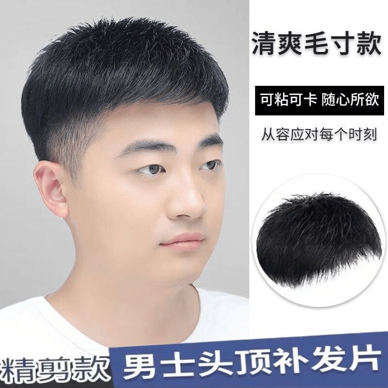 かつら男短髪毛寸全真髪かつら片男性は粘着性があり、薄っぺらな頭上に髪を補充することができます。