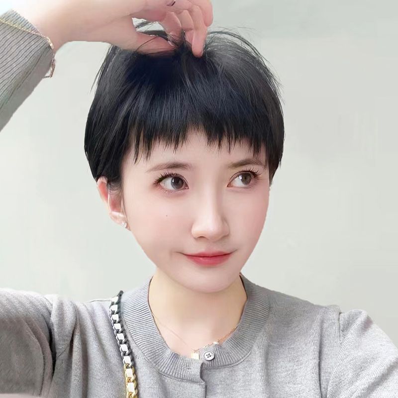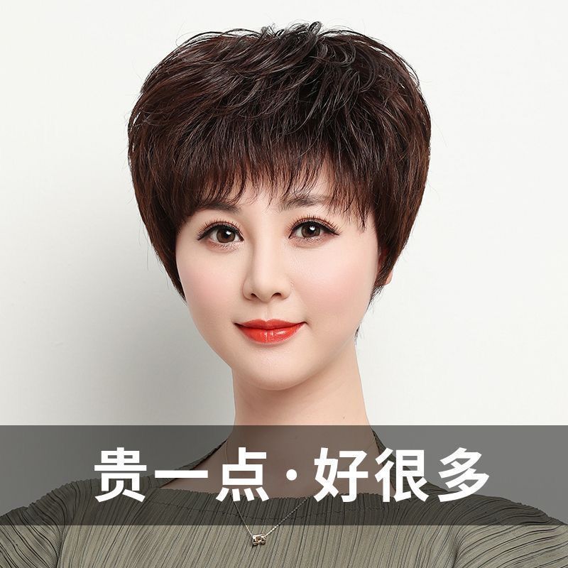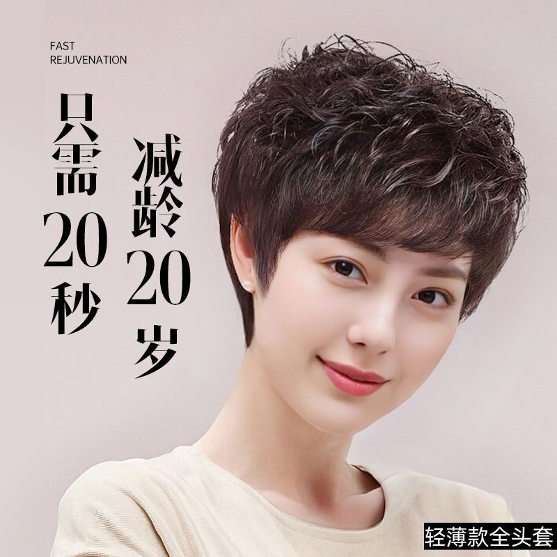 かつらの女性の全頭カバーのショートヘアの真髪の全人の髪の犬は前髪の頭をかじって年齢を減らします。