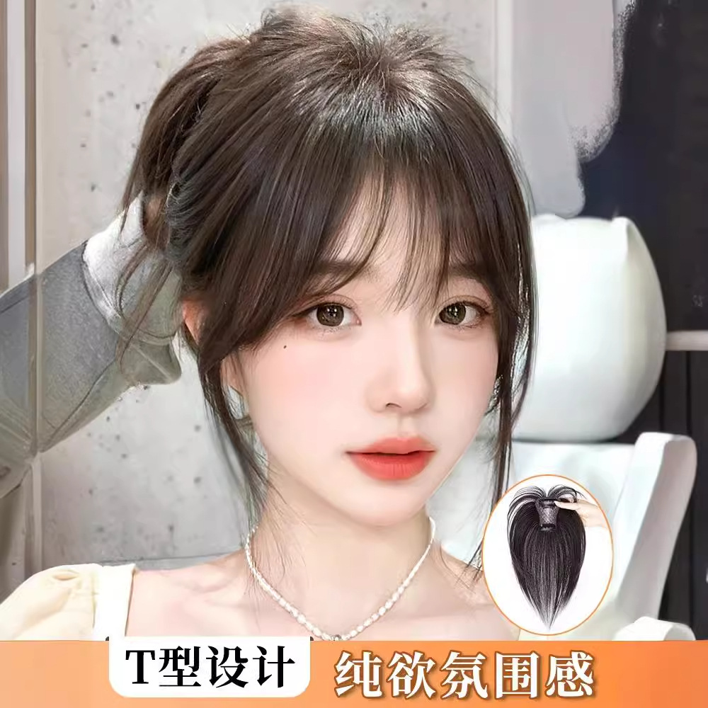 前髪かつらの女性の頭の上に髪を追加します。