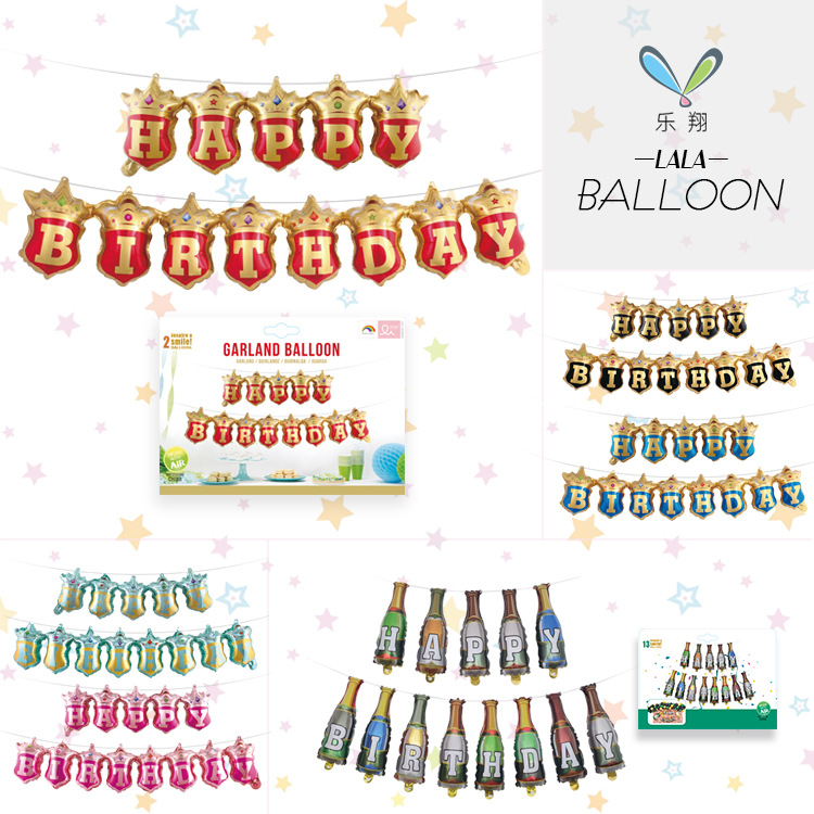 クロスボーダー連体クラウンラックボール酒瓶誕生日おめでとうアルファベットアルミ膜風船子供パーティー装飾配置