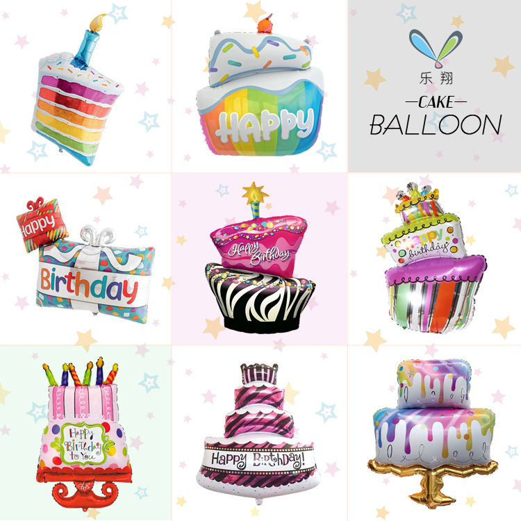 子供の誕生日パーティーのサプライズのプレゼントケーキの形のアルミ箔の風船の装飾は写真を撮ります。