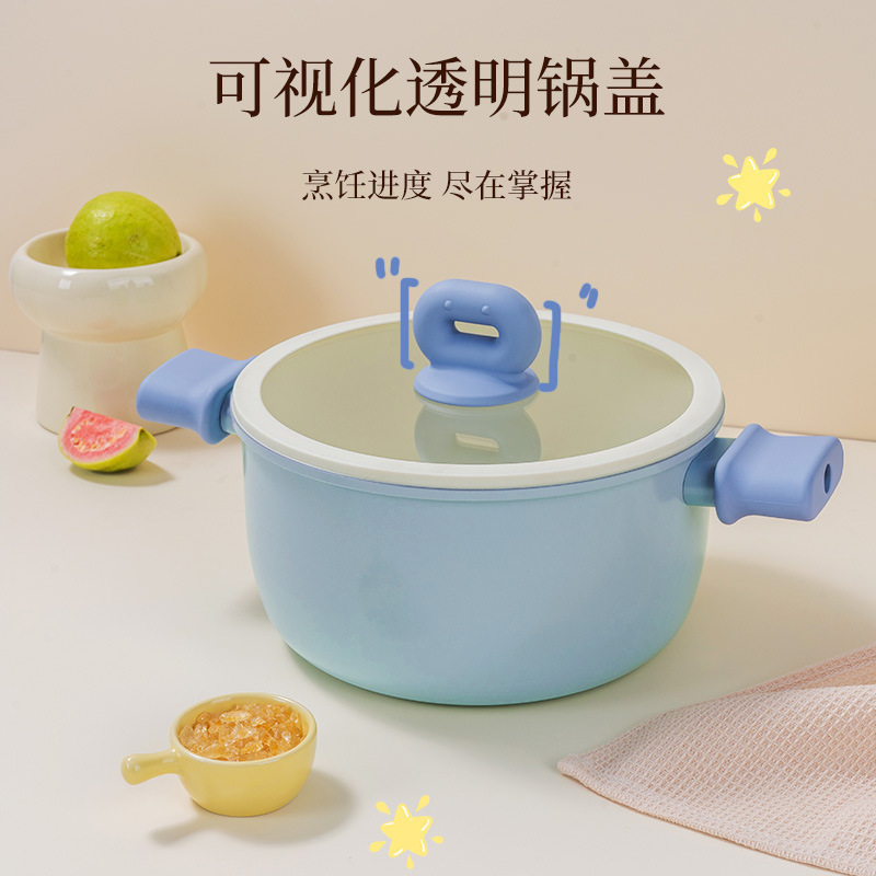 新款蓝豆宝汤锅高颜值陶瓷釉奶锅家用铁锅蒸煮一体锅通用炉灶批发