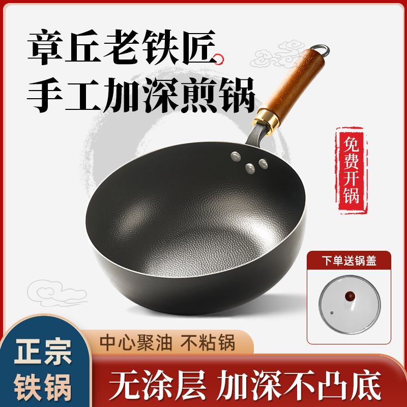 昔ながらの手作り鉄鍋、鍛造家庭用平底中華鍋、一人用大腹中華鍋、ノンスティック鍋、純手作り卸売