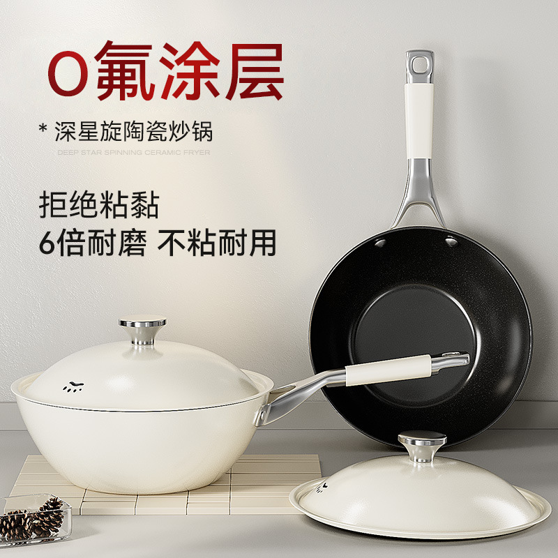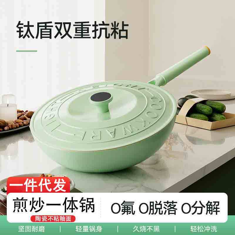 新型多機能フライパン 軽量ノンスティックフライパン チタン二重コーティングフライパン 中華鍋 家庭用一体型フライパン