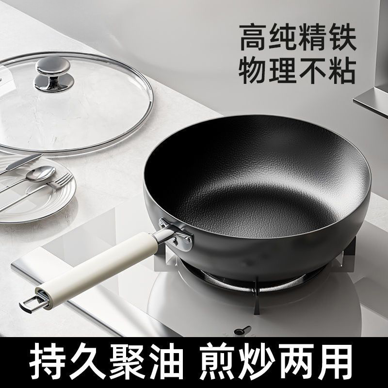 新型無塗装鉄鍋、家庭用炒め鍋、昔ながらの槌目鉄鍋、万能コンロ対応平底鍋、卸売