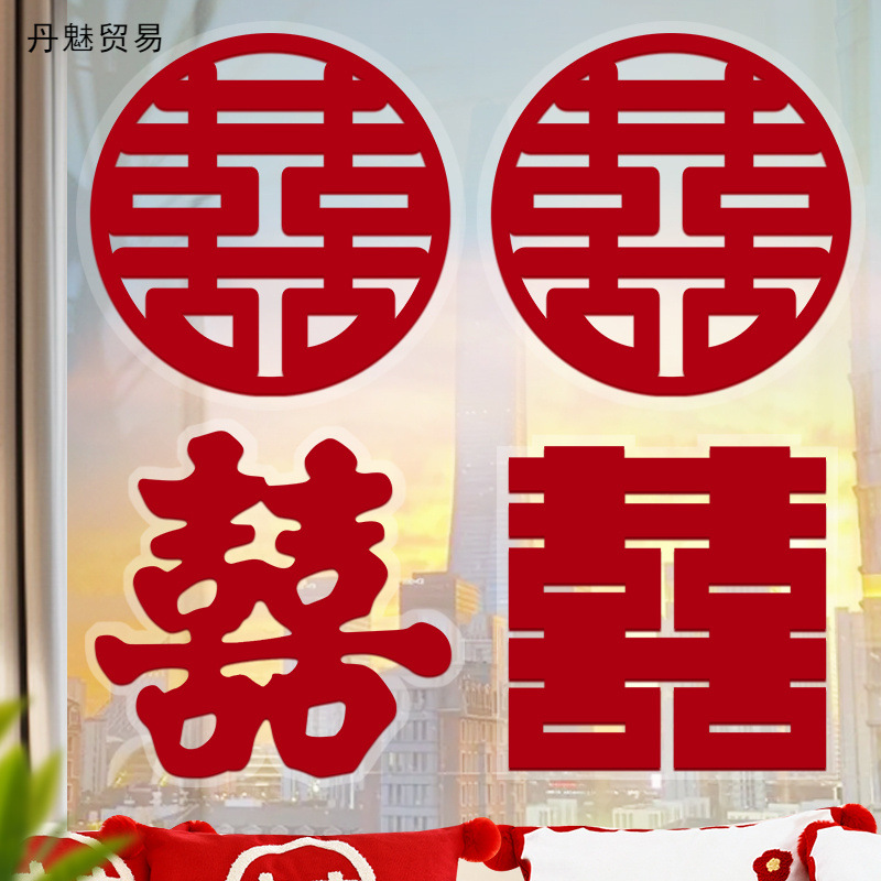 喜の字の結婚の静電気は窓の結婚の部屋を貼ります。