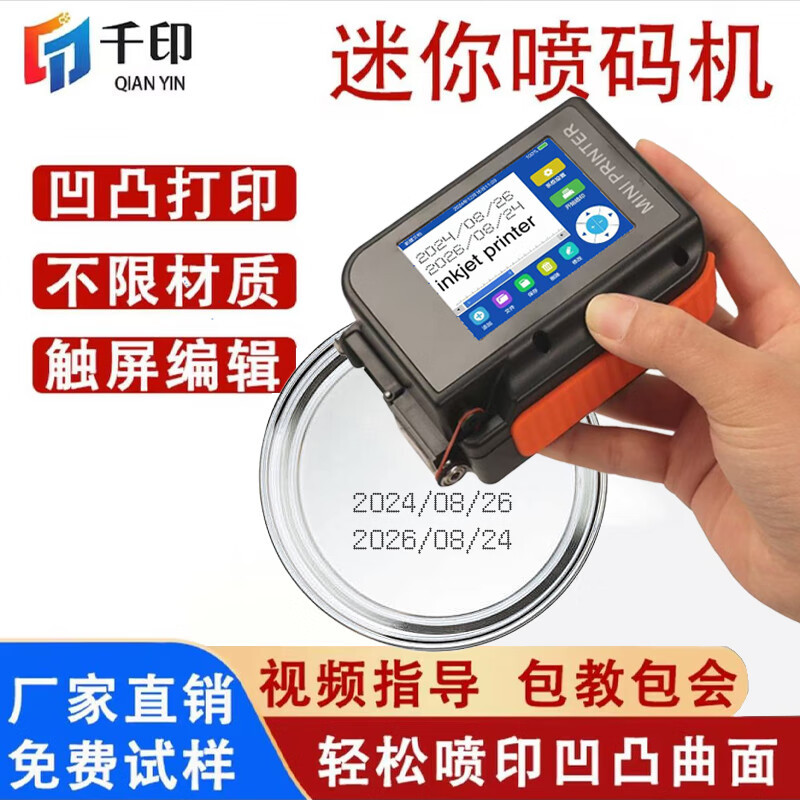 Qianyin ミニハンドヘルドインクジェットプリンター小型製造日凹凸ボトルボトル底缶包装袋