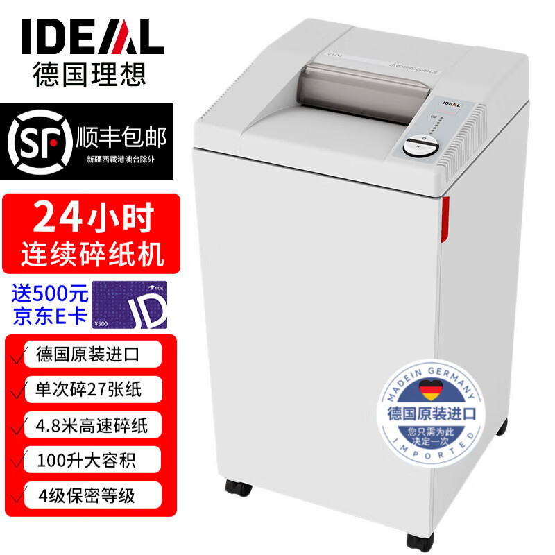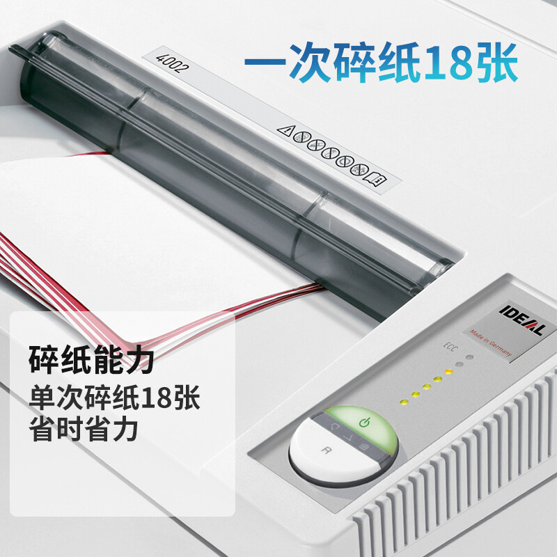 IDEAL ドイツ理想 P-2 グレードのオフィス用機密シュレッダー、一度に 21 枚を破砕し、30 分間連続破砕可能