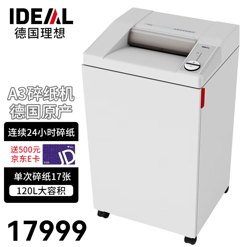 IDEAL イデアル 大型シュレッダー A3 (1回45枚、24時間連続、165Lカードディスク)