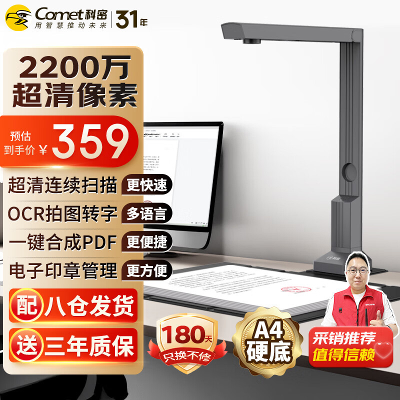 Kemi スキャナー 2200 万ピクセル ハイスキャナー A4 ハードボトムスキャナー PDF 合成 OCR テキスト認識