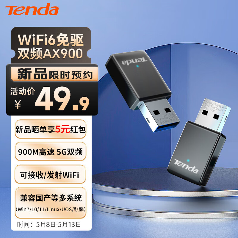 Tenda WiFi6 ドライバー不要 900M USB ワイヤレス ネットワーク カード 5G デュアルバンド内蔵デスクトップ ノートブック