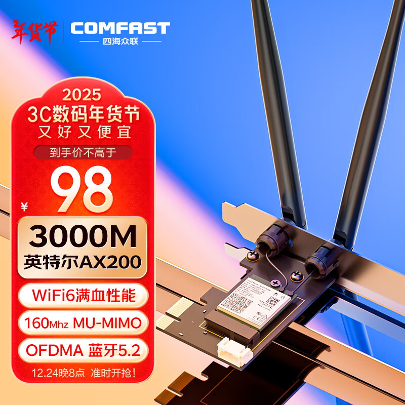 COMFAST pcie ワイヤレス ネットワーク カード デスクトップ コンピュータ WIFI6 レシーバー デスクトップ専用内蔵 AX200SE
