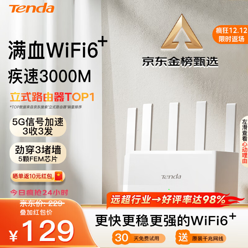 Tenda Tenda ルーター [フルブラッド WiFi6+] アップグレード垂直 AX3000 ギガビット ワイヤレス ホーム ウォール パス