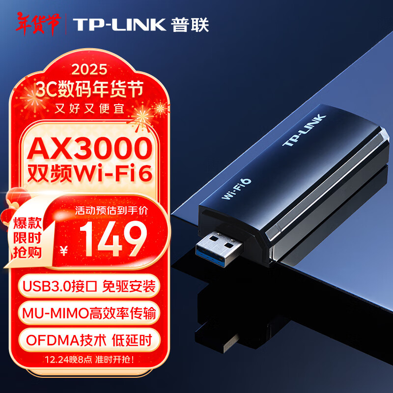 TP-LINK WiFi6 ギガビット USB ワイヤレス ネットワーク カード デスクトップ専用 AX3000 Wi-Fi インターフェイス