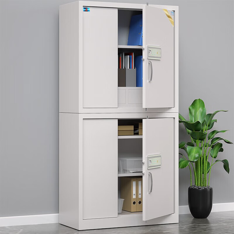 Tiger 指紋認証パスワードロック セーフティボックス 2ドア スチールファイルキャビネット グレー