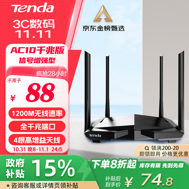 Tenda AC10 デュアルギガビットワイヤレスルーターゲームルーティングフルギガビット有線ポート 5G デュアル