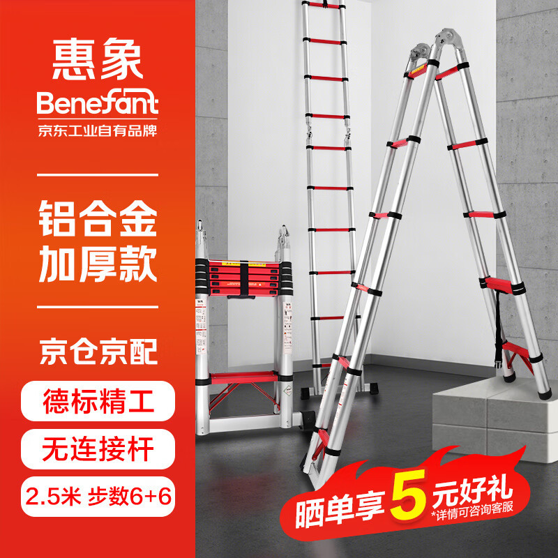 Huixiang Jingdong Industrial プライベート ブランド伸縮はしごヘリンボーンはしごアルミニウム合金厚みのある折りたたみはしごエンジニアリング階段
