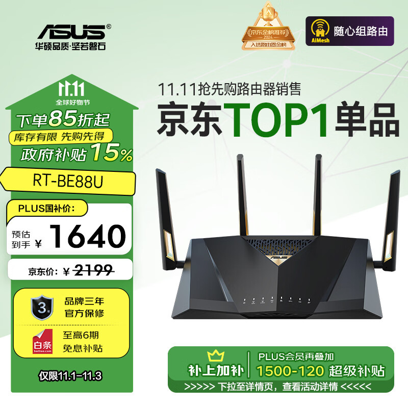 ASUS RT-BE88U ルーター ホーム ワイヤレス コンペティション ルーティングは iPhone 16 Pro をサポート