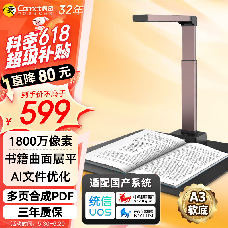 コメット GP2312Z ハイカメラ 1800万高精細ピクセル 書籍曲面フラット化 OCR認識