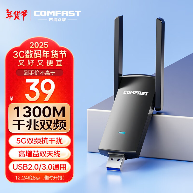 COMFAST ギガビット USB ワイヤレス ネットワーク カード デスクトップ専用高速 1300M デュアルバンド 5G 壁貫通ノートブック