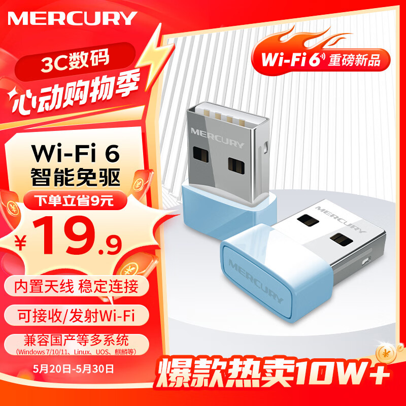 MERCURY WiFi6 ドライバー不要の USB ワイヤレス ネットワーク カード内蔵アンテナ ゲイン デスクトップ ペン