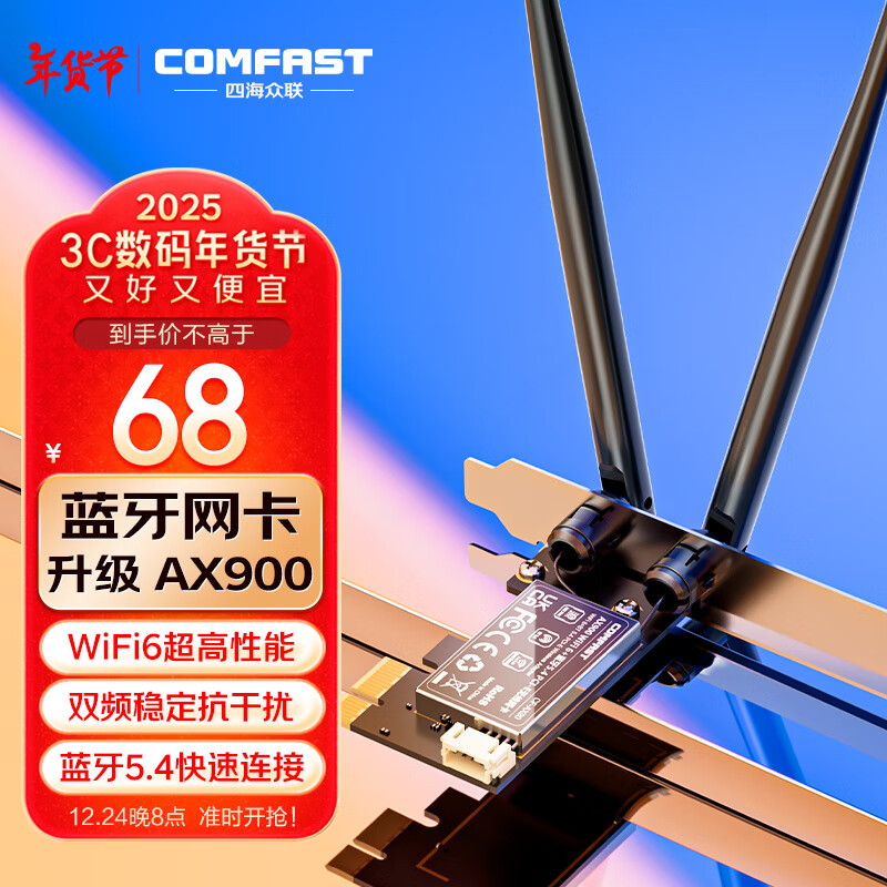 COMFAST CF-AX90 ワイヤレス ネットワーク カード Bluetooth 5.4 ツーインワン PCIE インターフェイス WiFi6 デュアルバンド 5G デスクトップ
