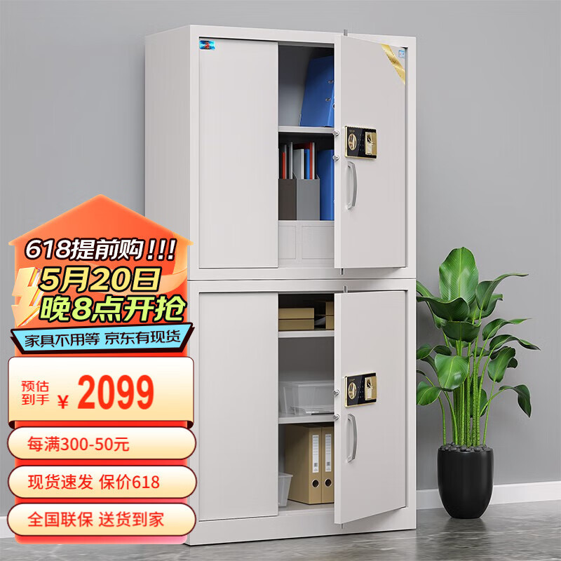 Tiger 1850 指紋パスワードロックセーフティボックス分割二段スチールオフィスファイルキャビネット