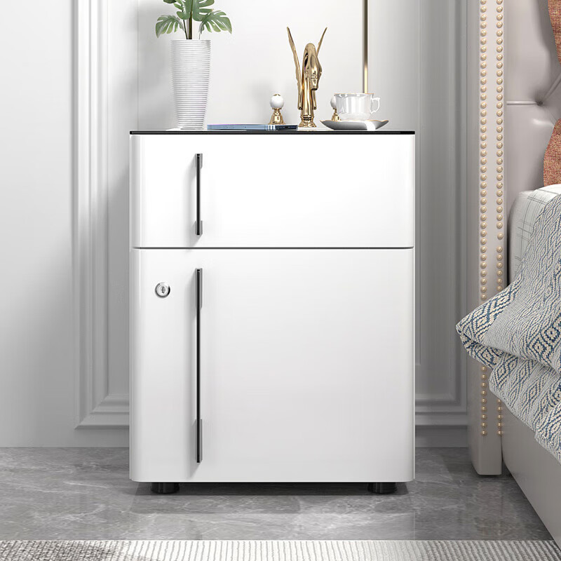 タイガー ベッドサイドキャビネット 隠し保管キャビネット ファイルキャビネット オフィスキャビネット 53cm パスワードモデル ホワイト