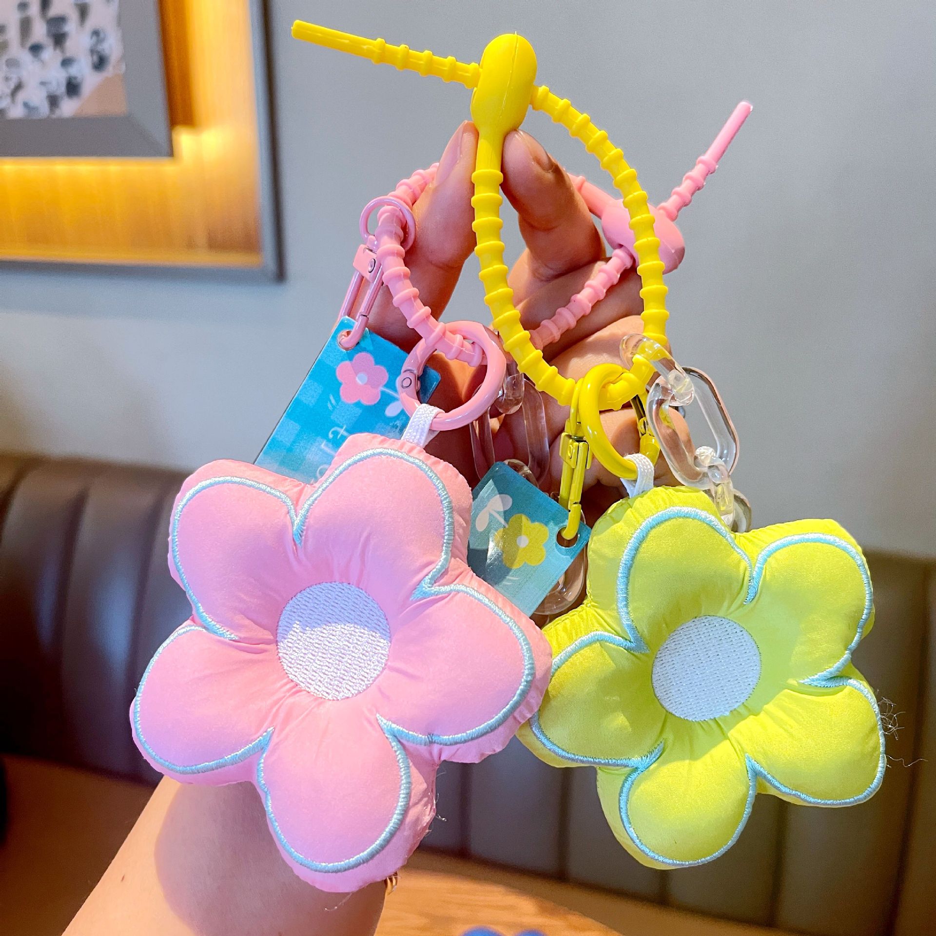 カラーの布芸の小さい花はかわいいぬいぐるみのピンクの小さい花の精巧な車のキーホルダーのリュックサックを掛けて卸売りを飾ります。