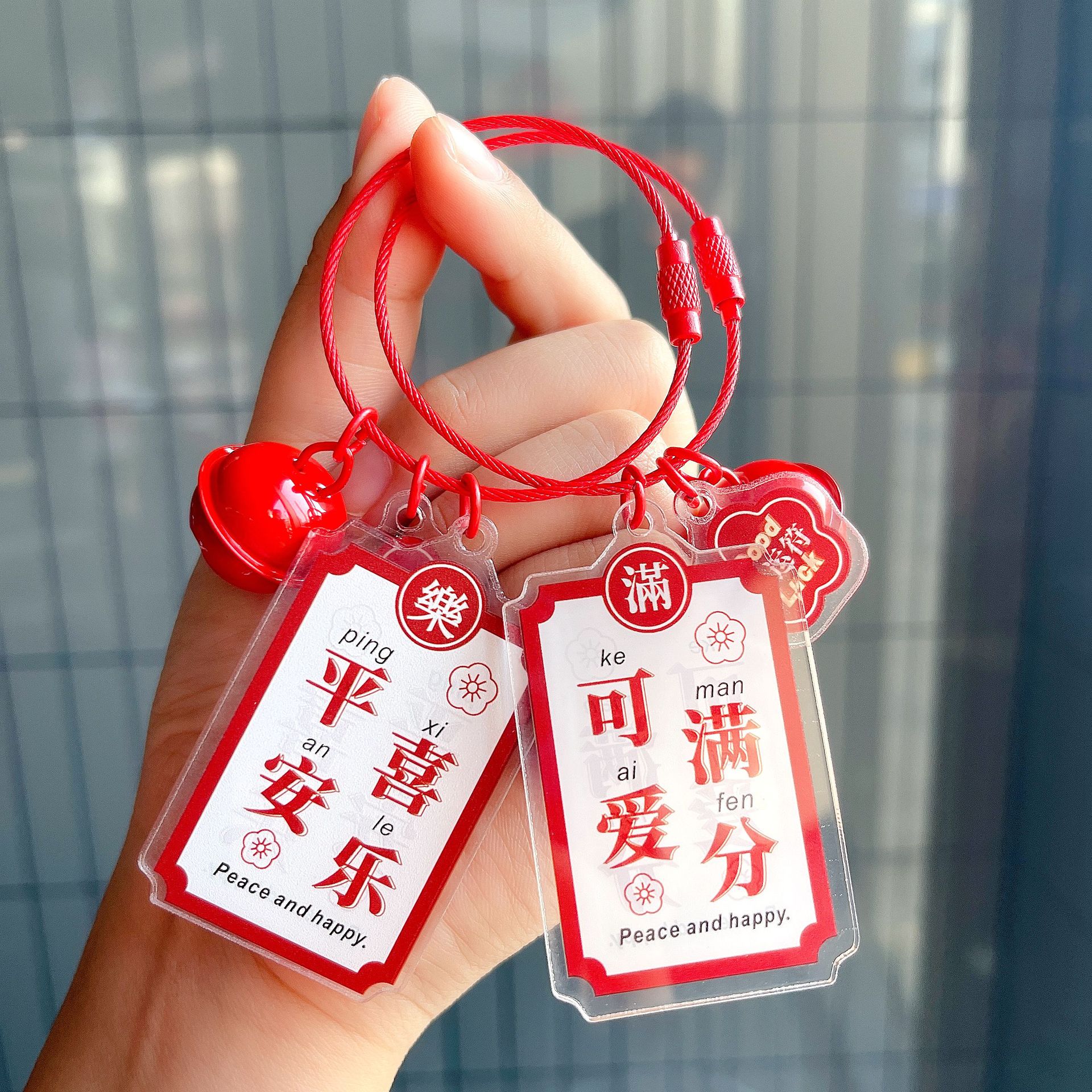 新年のアクリルの字の札のキーホルダーのペンダントのアイデアの平安の喜びの良い事はキーホルダーの部品の卸売りが発生します。