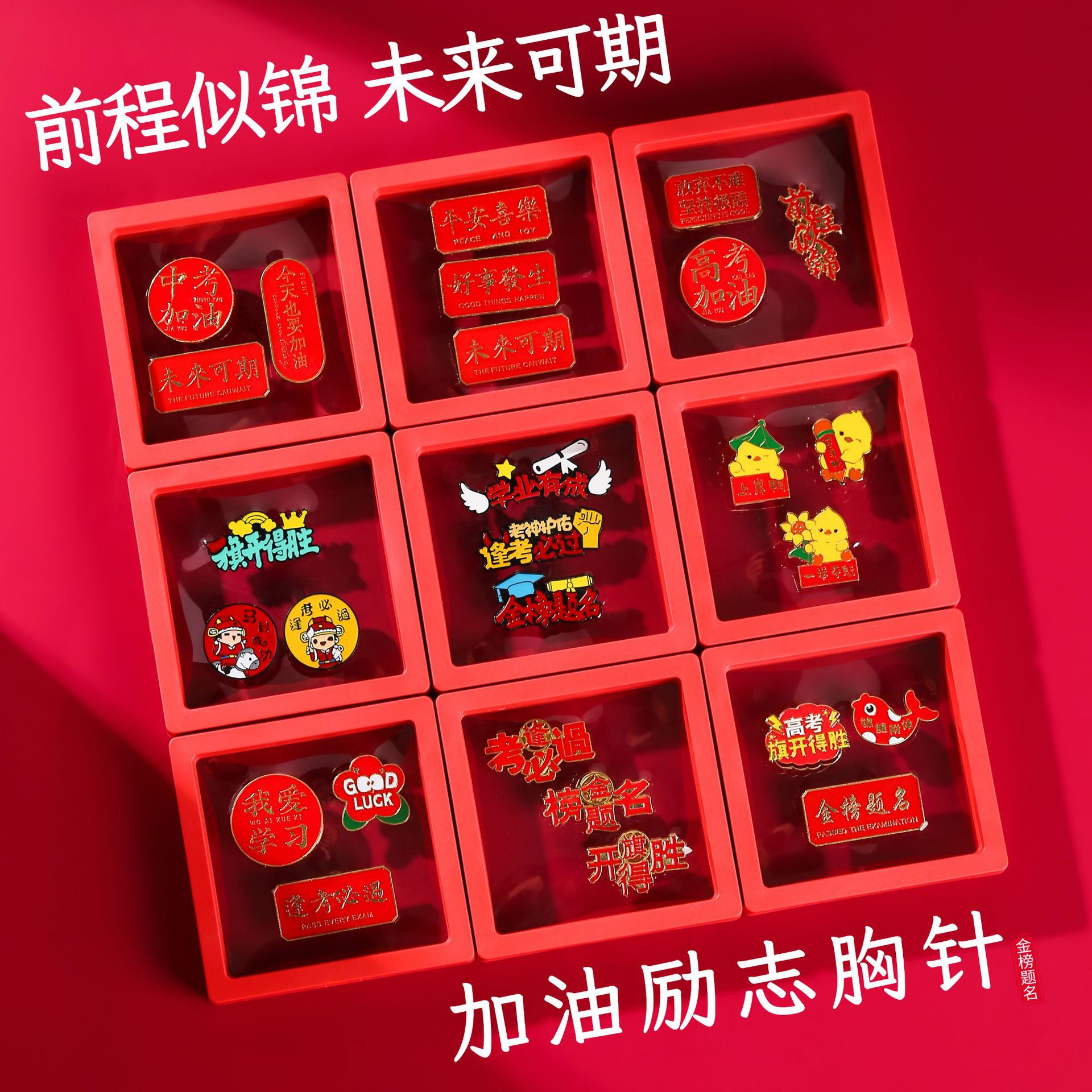 ギフトボックスの励ましの志の金属の紋章の金榜の題名のブローチは試験に会うと必ずピンの中の大学入試の学生の卒業の贈り物を過ぎます。