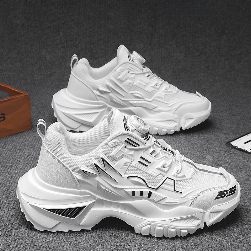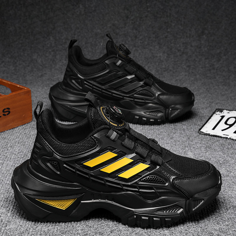 機甲風男靴2024秋冬の新型スポーツレジャー回転ボタン学生の厚い底が高くなって滑り止めのお父さん靴が高くなります。