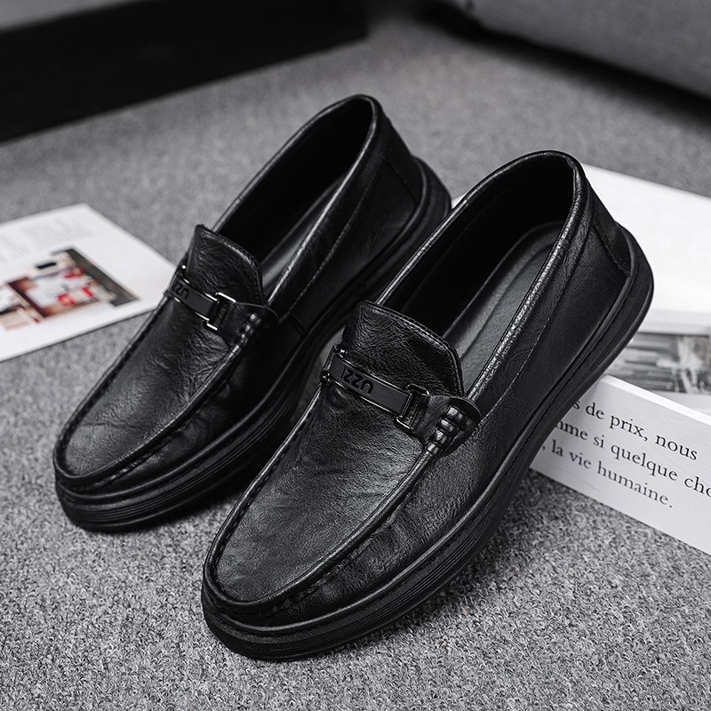 男性靴2024秋のビジネスはカジュアルな通勤黒の靴を履いている男性は、怠け者の柔らかい底の豆の靴を漕いでいる