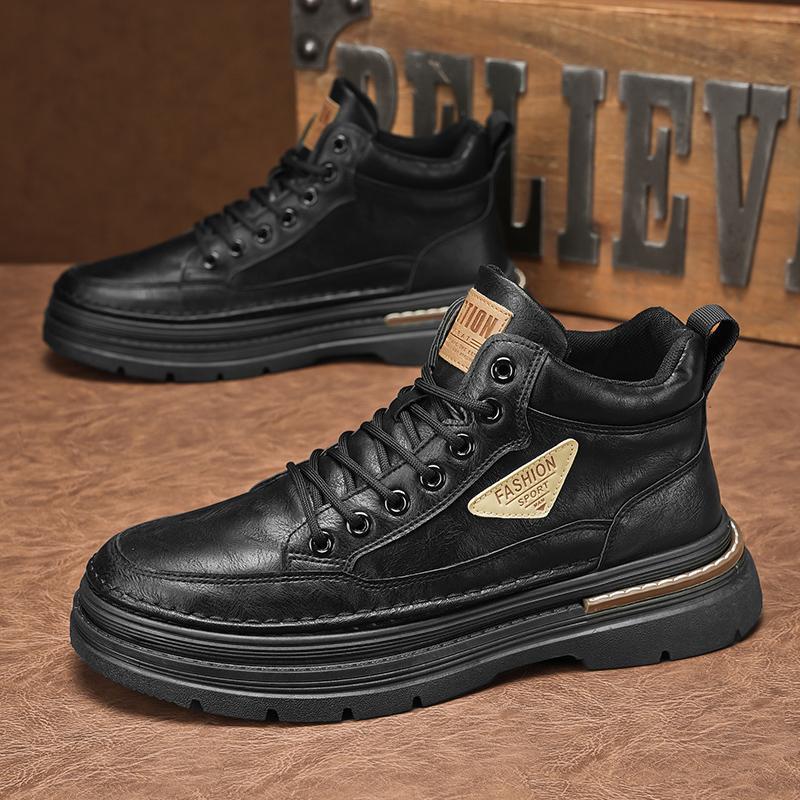 男性靴2024新型冬の大衆設計レジャー運動の潮流は厚い底で高くなります。
