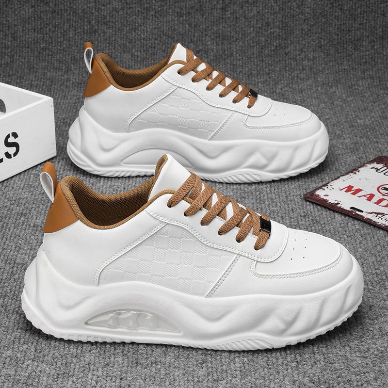 男性靴2024新型冬のトレンドは厚い底の青少年の衝撃を受ける運動のレジャーの純色の簡単な風の板の靴を合わせます。