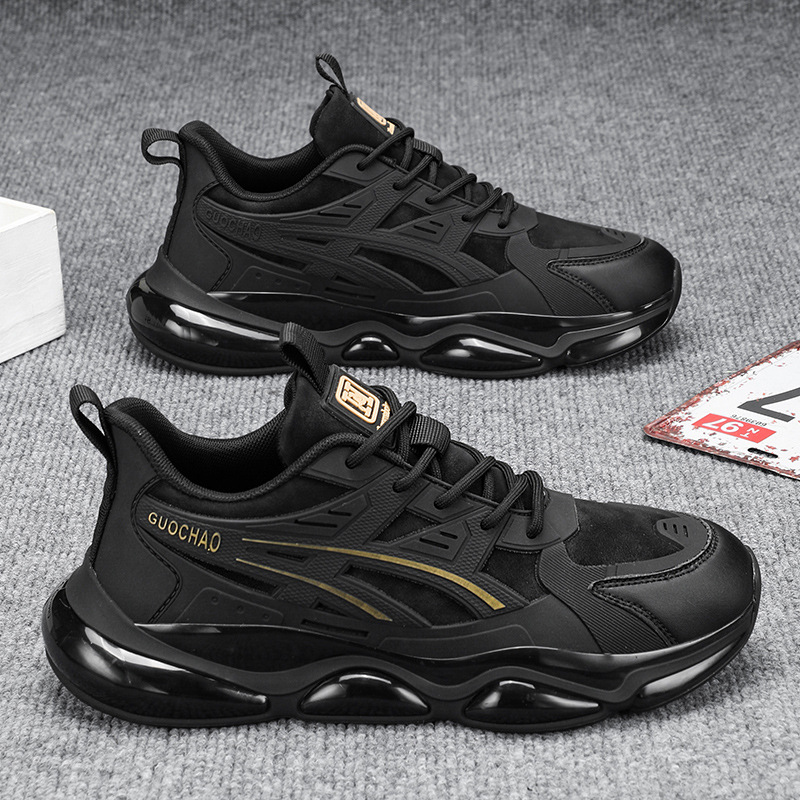 男性靴2024秋冬の新しい厚い底の免震カジュアルなお父さんの靴の青少年の黒色の高級感の運動靴