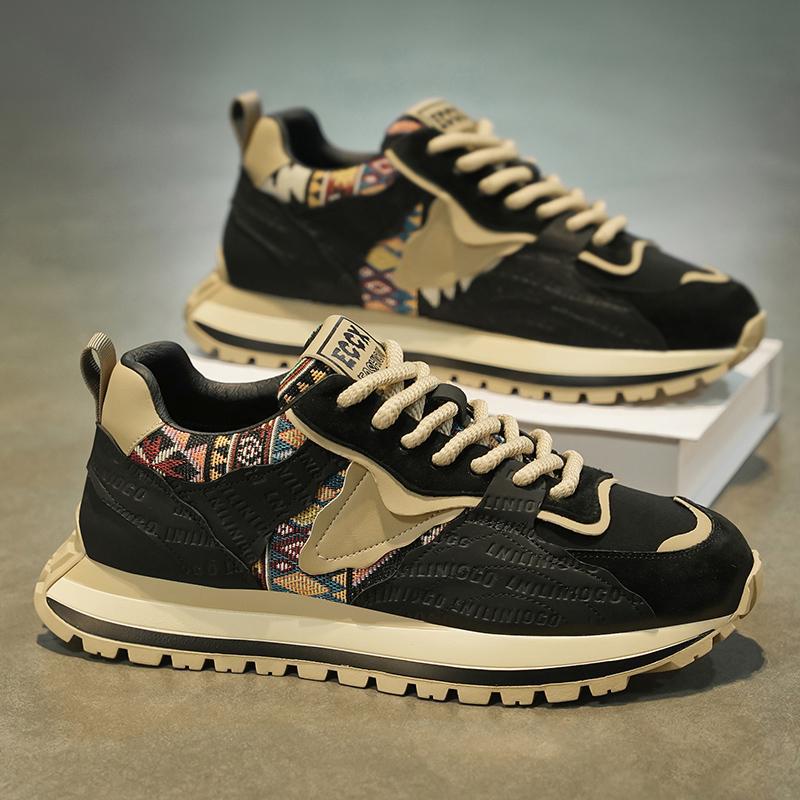 男靴2024冬の新型ファッションは厚い底の耐摩耗性登山運動レジャージョギング高級おじさんの潮靴を組み合わせています。