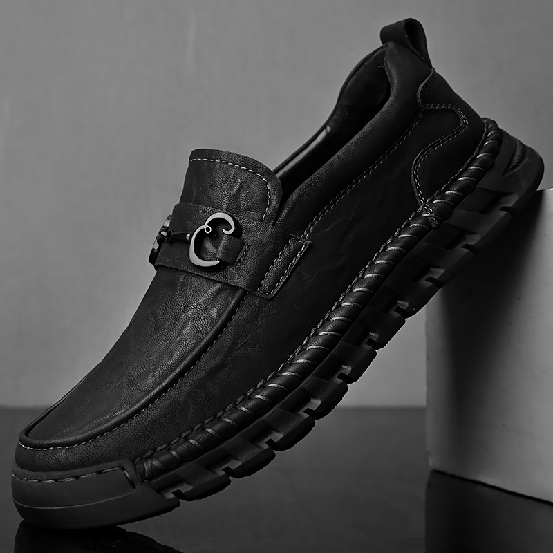 秋の2024の新型の中で高くなる本革のワニの紋様の豆の靴の厚い底の1足は怠け者のレジャーの靴の男性の靴を漕ぎます。
