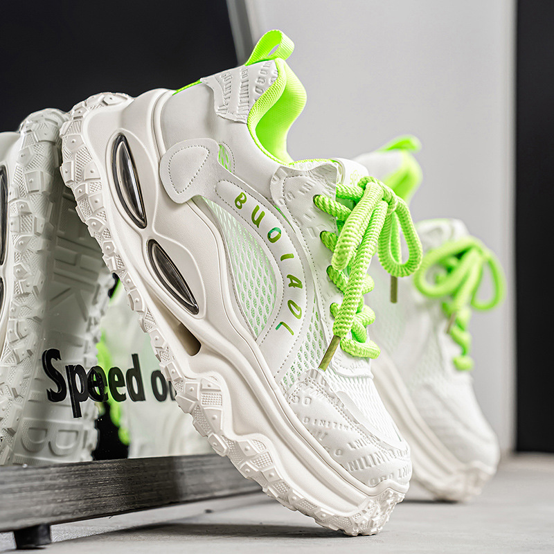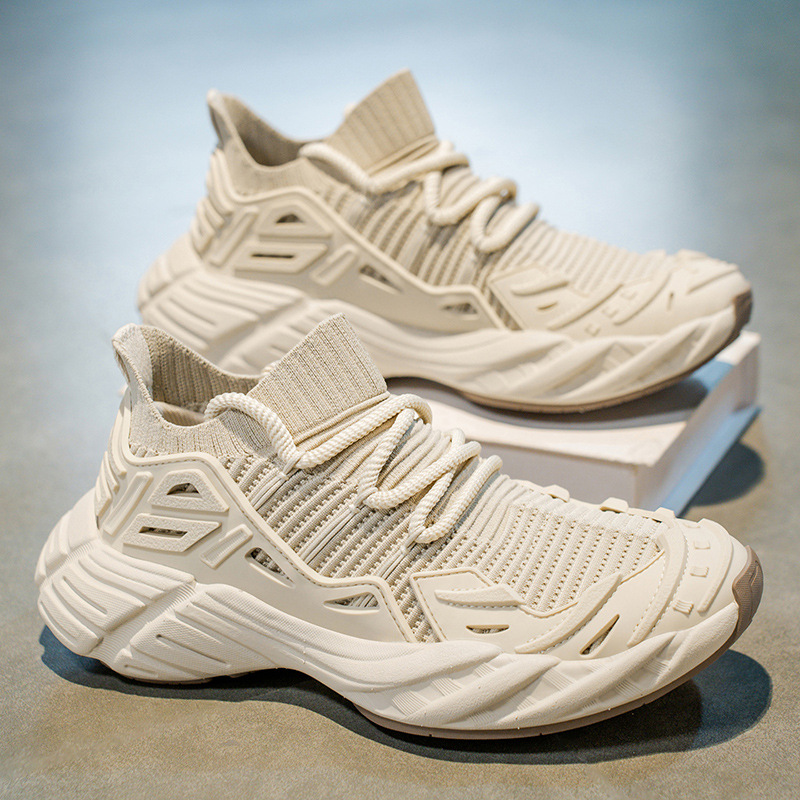 白い靴、ニッチなデザイン、フライウーブンメッシュ、通気性のあるトレンディな靴、パーソナライズされた多用途の厚底、韓国版の多用途のダッドシューズ