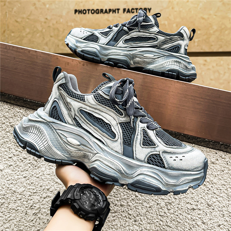 メンズシューズ夏 2025 新入生トレンド多用途通気性ニッチレトロ厚底耐摩耗性メンズカジュアルスニーカー