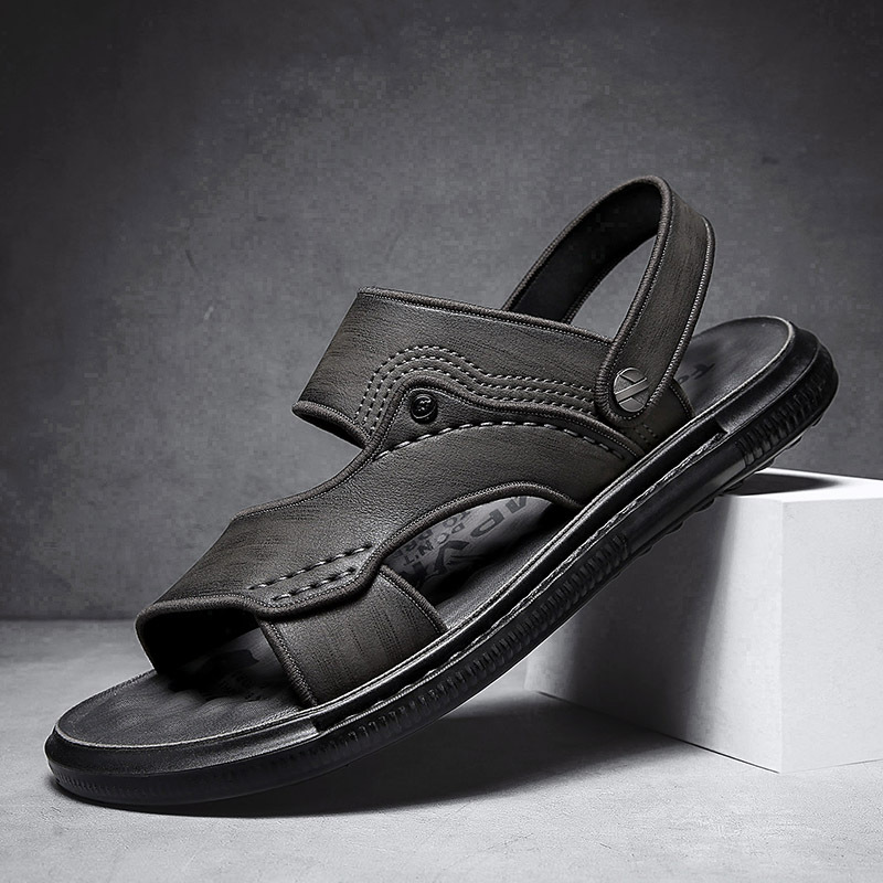 サンダル メンズ 2025 夏新作 レザービーチシューズ カジュアル 滑り止め 防臭 軽量 アウター兼用スリッパ