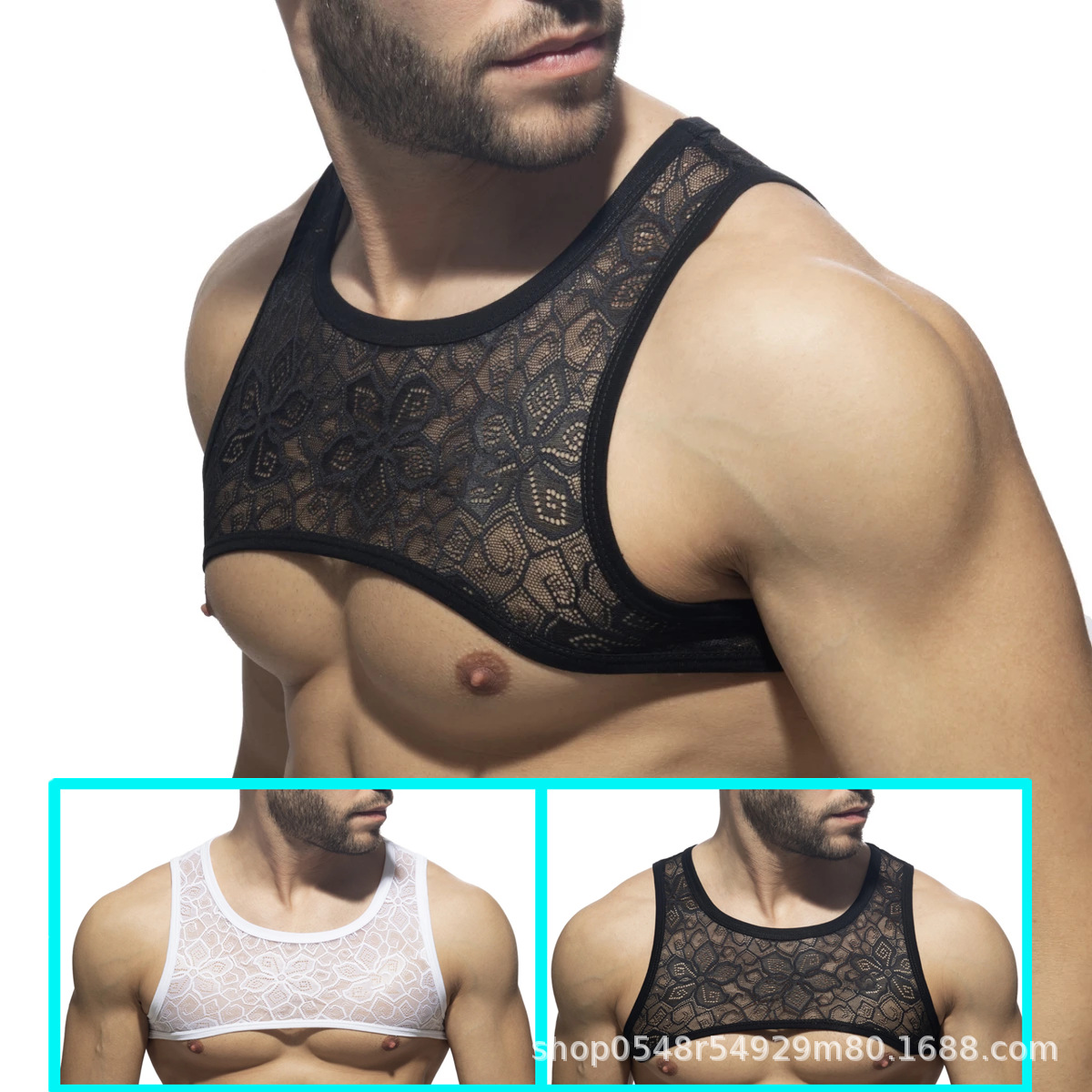2023新型AD男性下着レース趣味肩ひもセクシーベスト軽薄透明クロスボーダー対外貿易熱売