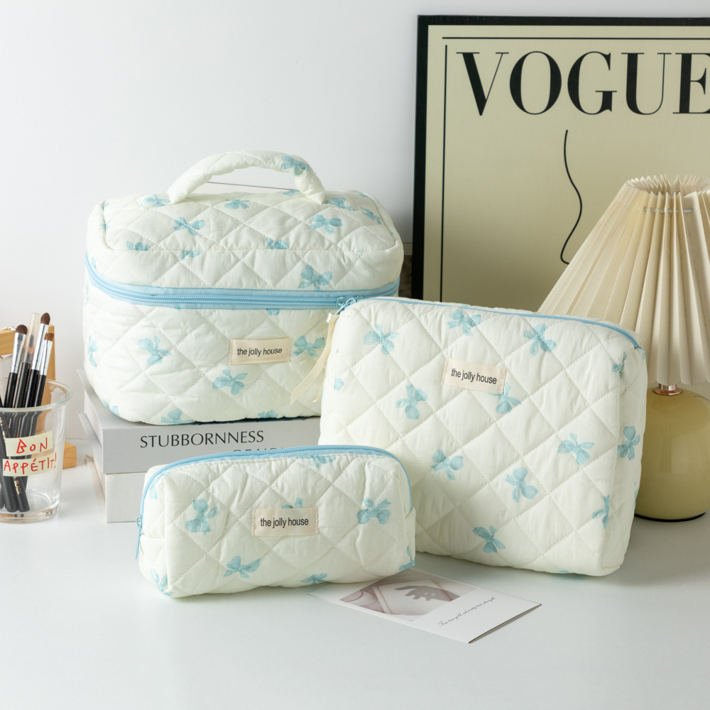 キルティング白地蝶結び化粧バッグ小清新かわいい学生携帯収納バッグ洗面バッグ大容量バッグ