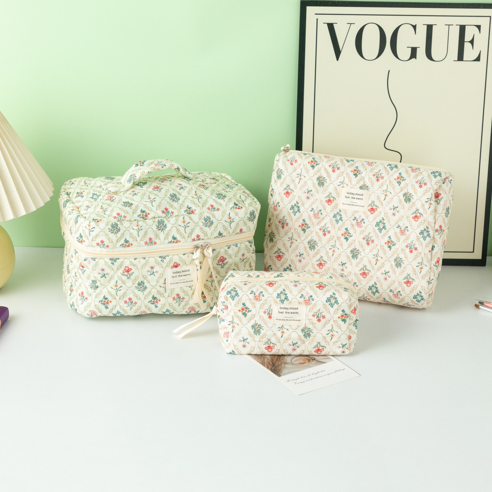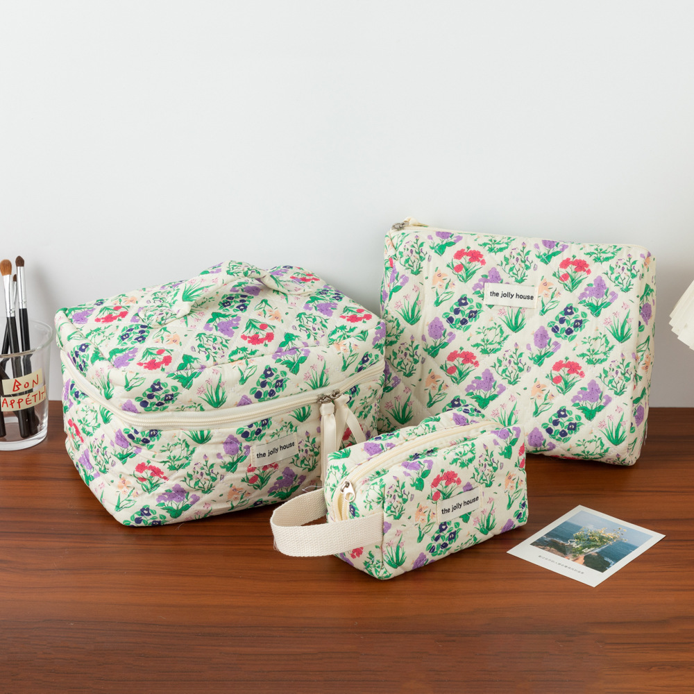 新品手持ち大容量ポーチ小砕花収納携帯キルティング可愛い花インスタ新収納袋