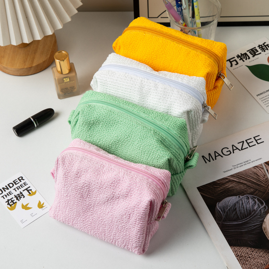 2023新型大容量純色しわ波化粧バッグ清新少女洗面肌学生収納バッグ