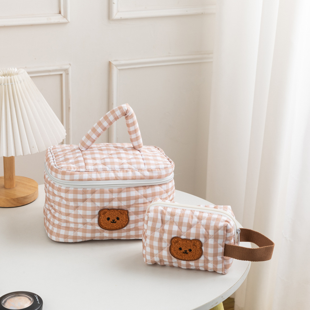大容量刺繍熊化粧バッグかわいい女性収納バッグ学生携帯大容量綿キルティングハンドバッグ
